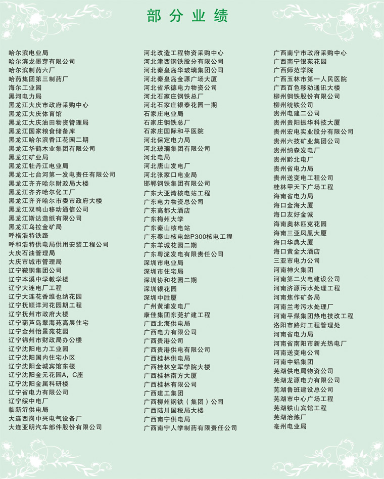 企業(yè)簡(jiǎn)介 上海人民電纜集團(tuán)銷售有限公司是-家從事專業(yè)電線電纜、電纜附件、電纜材料、生產(chǎn)經(jīng)營(yíng)、研究開(kāi)發(fā)的高新技術(shù)企業(yè),主導(dǎo)產(chǎn)品有:電力電纜段電纜附件、控制電纜、礦用電纜、船用電纜、通迅電纜、計(jì)算機(jī)電纜、數(shù)字傳輸電纜、裸電線電纜、電氣裝備用電線電纜及電纜材料。 人民集團(tuán)核心理念是:“叫人為本,利益萬(wàn)民,誠(chéng)實(shí)公平,不斷創(chuàng)新”。 企業(yè)榮譽(yù) 集團(tuán)通過(guò)了IS09001質(zhì)黽管理體系認(rèn)證、IS014001環(huán)境管理標(biāo)準(zhǔn)體系認(rèn)證,同時(shí)集團(tuán)系列產(chǎn)品均獲國(guó)家工業(yè)產(chǎn)品生產(chǎn)許可證,國(guó)家強(qiáng)制性CCC認(rèn)證,礦用產(chǎn)品均通過(guò)國(guó)家安檢局MA煤安標(biāo)志認(rèn)證,船用產(chǎn)品均通過(guò)...